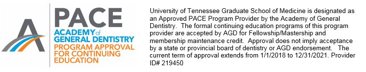 The University of Tennessee Health Science Center College of Medicine, Knoxville designates this live activity for a maximum of *AMA PRA Category 1 Credit(s)™. Physicians should claim only the credit commensurate with the extent of their participation in the activity.