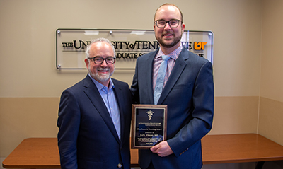 This award honors faculty who exhibit a strong commitment to teaching while serving as a role model to students, residents, and colleagues. This year’s recipient, Kyle L. Kleppe, MD joined the Department of Surgery in 2018 after completing his residency training at the GSM in 2017 and his fellowship training in Advance Gastrointestinal and Minimally Invasive Surgery at the University of Wisconsin School of Medicine and Public Health in 2018. In addition to extensive didactic (25-30 didactics per year!) and Socratic teaching to both medical students and residents, this year’s awardee also leads the training for his department in the Center for Advanced Medical Simulation. With respect to the quality of his teaching, he has received 3 departmental teaching awards, as well as induction into the Gold Humanism Honor Society as a resident for his humanism and excellence in teaching on the recommendation of the UTHSC Medical Student class of 2017. Dr. Kleppe has also demonstrated scholarship through publication of peer-reviewed articles and book chapters, as well as presentation of posters and invited lectures.